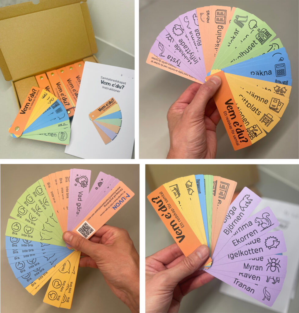 ”Vem e’du?” presenterades i samband med skolnätverket Haru’s kick-off i Helsingfors 9.9.2025. Alla skolor som är med i nätverket får en låda med 10 samtalsredskap, samt tillhörande instruktioner (se bilder). Detta samarbete mellan Haru och Muvon rf stöds av Svenska Folkskolans Vänner, som också möjliggjort att vi i föreningen kunnat färdigställa redskapet.